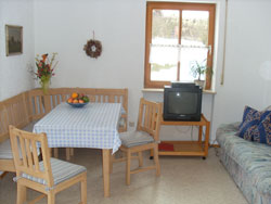 In der großzügig geschnittenen, liebevoll eingerichteten Wohnküche ist es Ihnen möglich ihr Essen in der Küche selbst zuzubereiten ( enthalten sind ein Backofen mit Herd, eine Mirkowelle und ein Kühlschrank).